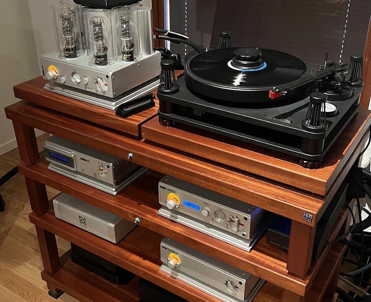 Apexorca Posted April 28, 2016 Author Posted April 28, 2016 (edited) Här startar den dubbelpipiga som enkelpipig i Nagras integrerade 300i med 4 st 300b rör som tål 8000 timmar. Världens kanske läckraste integrerade förstärkare som är liten och nätt men det håller inte prislappen med om. Detta är unikt fina grejer. Eitan som var med och blev biten då lerklumparna Shakti kom gör sig inte av med dem i första taget. Jag har aldrig testat dessa. Det borde jag nog. Svår att titta sig mätt på... Jag tror den spelar på några få watt bara. Och det med lätt fri luftighet jag sällan hört. Klangbalans, mikrodynamik och detaljer är vansinnigt musikalsikt sammansatta. Spelar man som Eitan på ganska moderata volymer får man nog inte ut en bättre presentation. Det är totalsläpp från högtalaren redan vid viskningsvolym och det har jag aldrig hört förut så bra. När jag bad Eitan dra på lite hamnande vi fortfarande ganska svagt men inget missades i musiken, det var dramatik, klang och allt man kan önska sig. Botten var bråddjup och mycket definierad och stram och inte en stavelse i botten missades. Jag är mycket imponerad. Mellanregister och diskant är klara och rena med en varm underton och då menar jag inte mullig, absolut inte, bleckblås och elgitarrer skriade som de skall. Nagra har en egen design på hur de skall stå. Först en spikliknande fot på 2 st aluminiumplattor som är dämpade mot varandra. Eitan har dessutom en avlastningsplanta till under. Audio Magic production. Edited December 29, 2017 by Apexorca Fosse and calle_jr 2 Quote