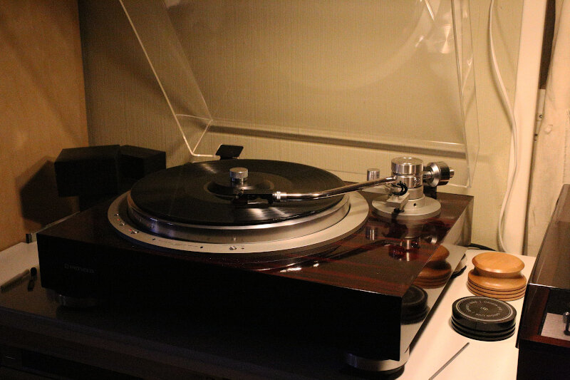 MatsT Posted January 15, 2017 Author Posted January 15, 2017 Jag tar en paus i tillbakablickandet och förflyttar mig till övningar gjorda 2017. Jag har ägnat mig en hel del åt utvärdering och optimering av PU'er i kombination med tonarmar. Här är min testrigg för flera av försöken. Inte så svår att känna igen för dem som varit med ett tag. Det är förstås en Thorens TD-125. Att den blivit utvald som testbänk beror på att det är smidigt att byta tonarm på den och dessutom fungerar den riktigt bra trots sin ålder. På originalplattan för tonarmen (som är svart) sitter det en SME-arm men den är för tung för flera av mina PU'er så jag har kört lite försök med lättviktstonarm. Jag har gjort ett par extra tonarmsplattor av en teakbräda från Biltema, den passade nästan perfekt så det var en begränsad snickeriinsats som behövdes. Jag har försett plattan med dämpmatta på undersidan för att få lite mindre vibrationer i den. Som synes är det bara att lossa på 3 skruvar för att byta tonarmsplatta och spelarens fjädring är tillräckligt styv för att det normalt inte behövs justering och det är tur för den görs underifrån. I mitt tycke blev det rätt snyggt med tonarmsplatta i teak. Quote