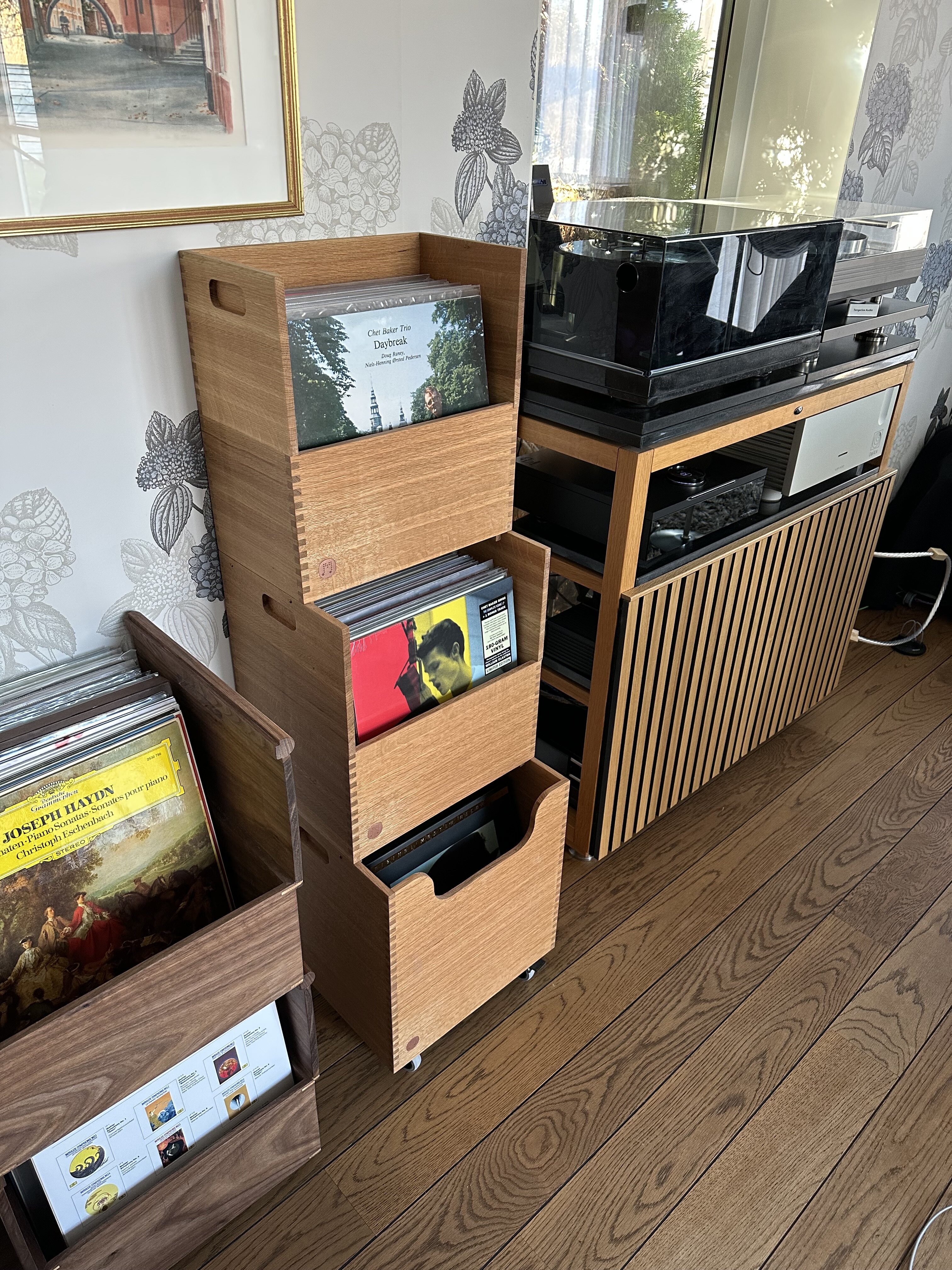 Josaa Posted June 3, 2023 Posted June 3, 2023 Jag brottas också med hur man förvarar vinylen. Har inte så stora problem med de skivor som inte har så stor rotation. Jag skissade på denna lösning för de skivor man spelar mycket och som man vill ha nära spelaren. Funderar på att göra en kommersiell produkt av det. Der är lätt att flytta lådorna.. AlfaGTV, Hifi_Perrra and calle_jr 3 Quote