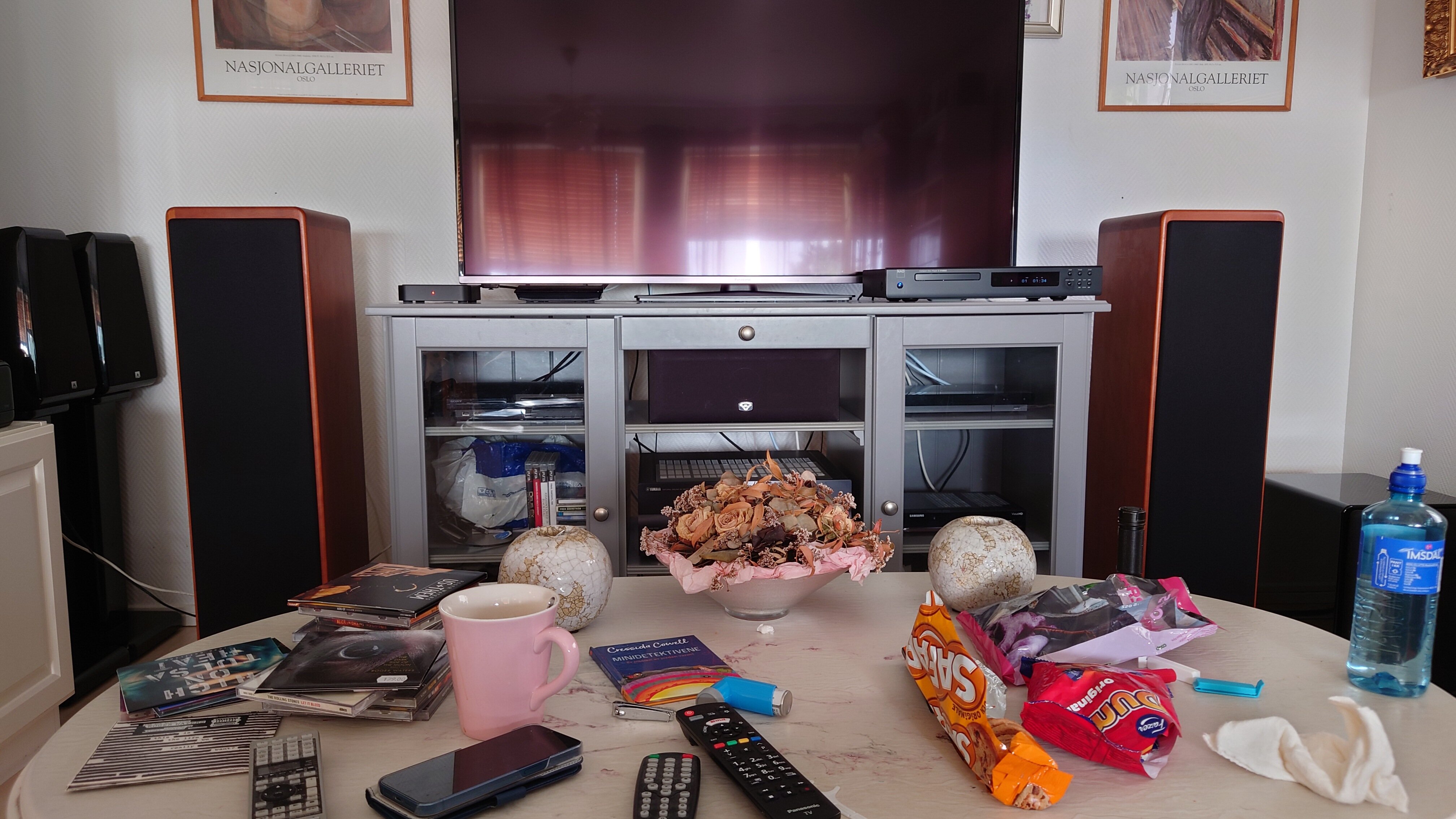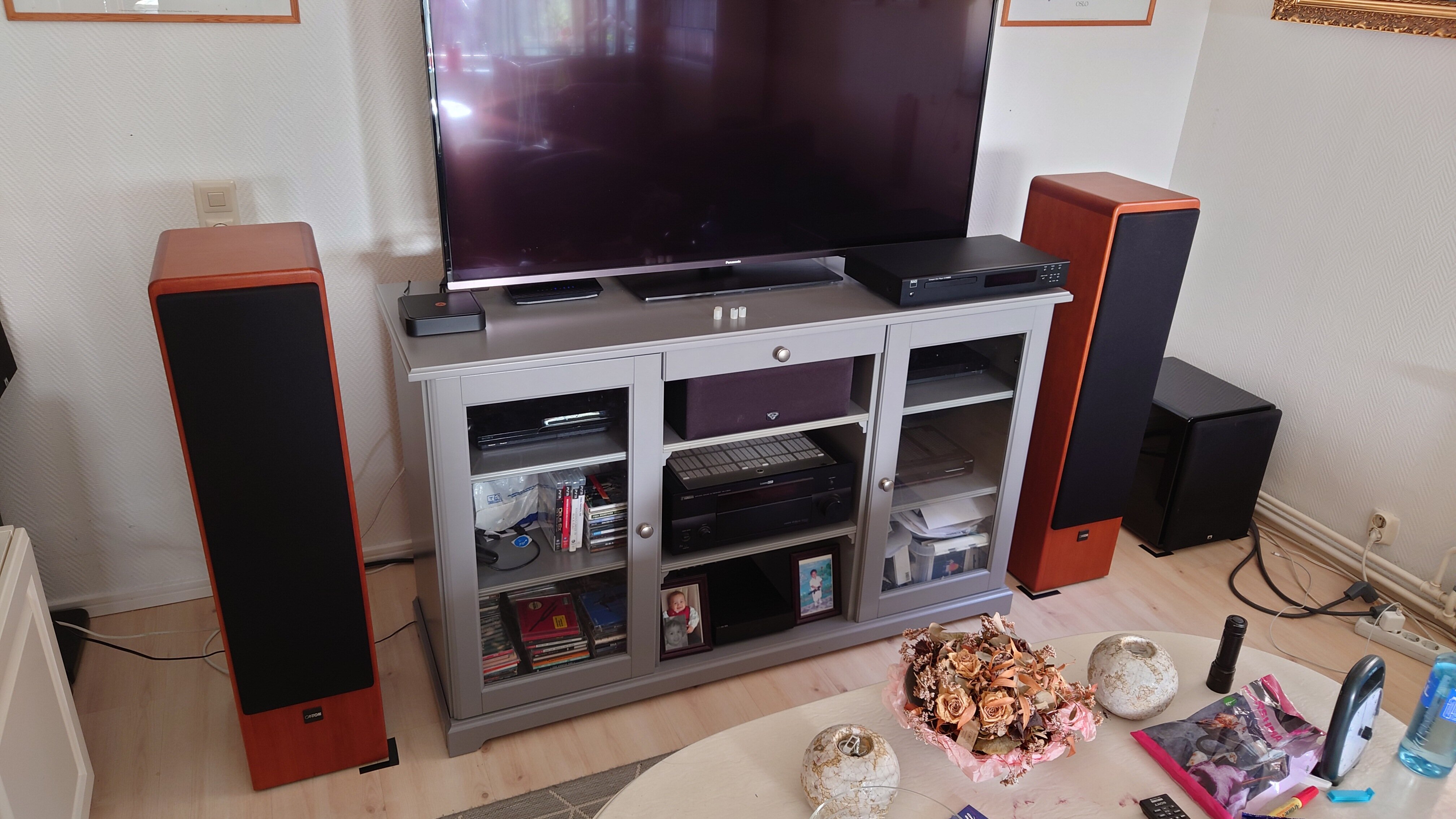 Danke Posted August 10, 2024 Author Posted August 10, 2024 Så här blev det, hittade nästan det gyldne triangelet, men högtalare står lite längre från sittplats än i gamla lägenheten. Jag försökte kompromissa med att vinkla högtalare lite in. Jag blir alltid så nervös i klappetest, men nu när jag klappar och möbler är på plats så är det bra. Det var så langt ut från väggen och till sidorna som frun aksepterade, Och hon ville ha Canton istället för Xtz 99.26, Frun tycker Canton är snyggast och har bäst ljud. Jag också tycker Canton är goda, Xtz vill jag inte sälja, hoppas dom kan användas i et annat rum. triomio, juha, AlfaGTV and 3 others 6 Quote