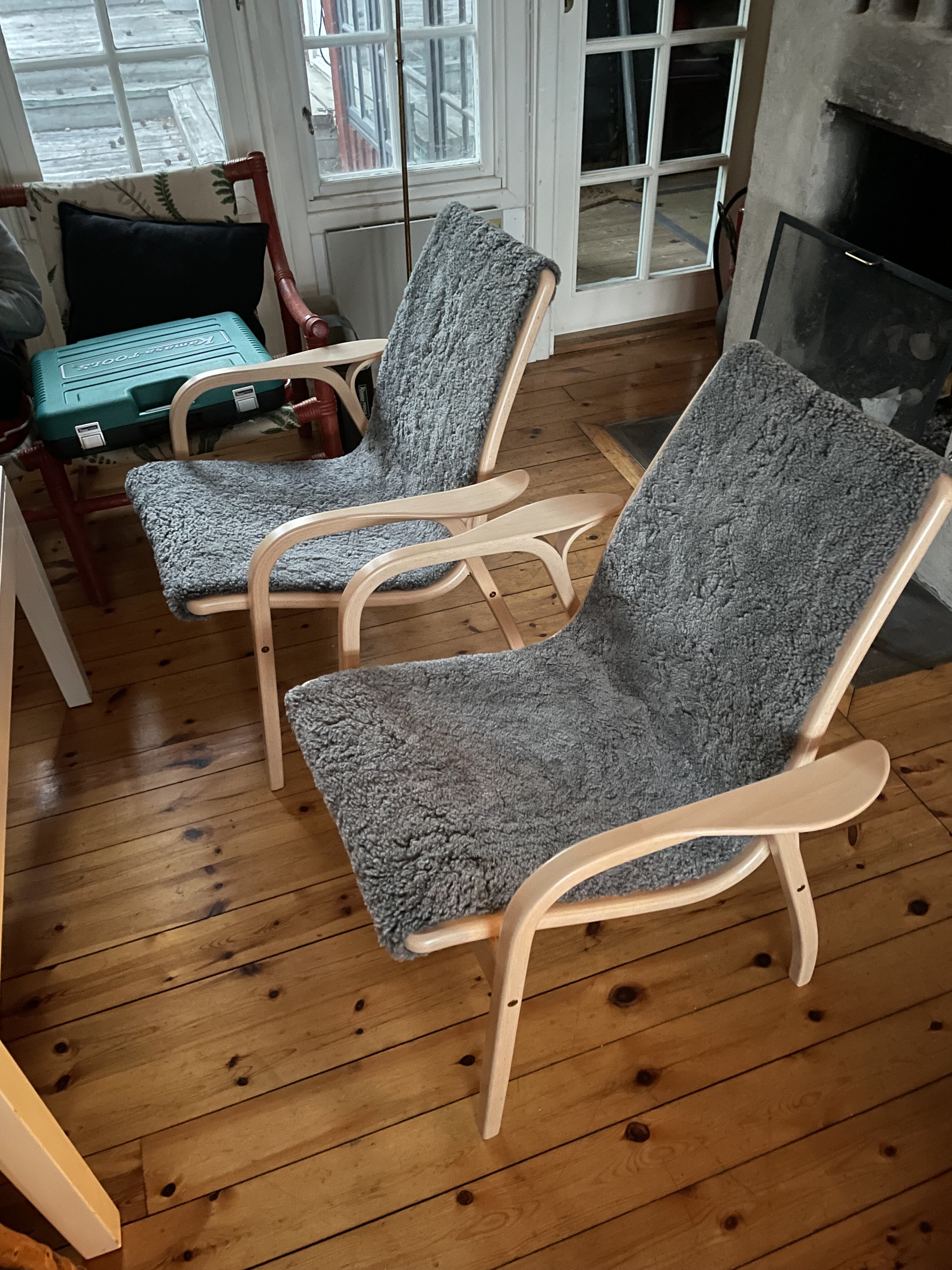 calm Posted June 18 Posted June 18 Köpte två nya lyssningsstolar till landet. Lamino är en känd stol, men enligt mitt tycke har den allt för hög rygg, men finns i en lägre ryggmodell som heter Laminett. Ingen fåtölj direkt men en bekväm stol. Böjträ i Bokträ i ben och rygg och fårskinn i sitsen. Design Yngve Ekström. Från 1950-talet. Ville väl egentligen haft Bruno Mattsons Eva också den i böjträ snyggare och finns i olika sitsar med flätning i sadelgjord eller till och med i flätat läder. Men satt inte så bekvämt i den tyvärr. Bebop and Ivery 2 Quote