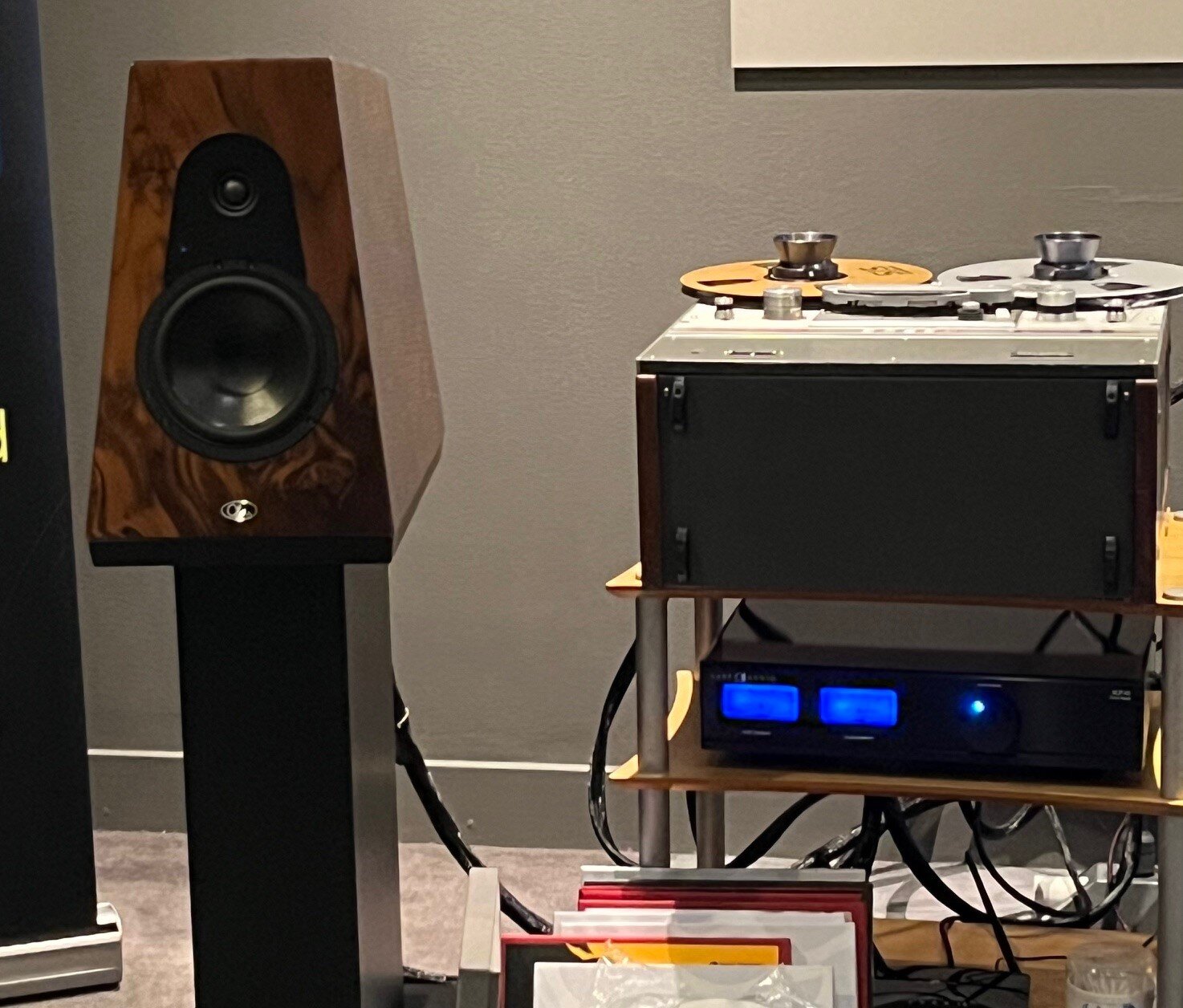 lindome Posted September 23, 2024 Posted September 23, 2024 Nästa rum är Audio Aktören. Terje är den som arrangerar Horten mässan som går av stapeln nästa helg. Även här huserade ett par rejäla Qln högtalare - denna gång stativare. Nu drivna med rörelektronik från Cary Audio. En full renoverad Garrard 301 snurrade lakritspizzor med den äran och det lät fint även här. Som ni märker kommer jag inte kommentera så mycket kring dacar o streamers. Jag lägger inte namnen på minnet lika lätt som det analoga..... Däremot var detta enda rummet som spelade band i år (iaf som jag hittade). Jag snackade lite med Terje på lördagen och vi hamnade såklart snabbt in på Studer maskinerna. Det visade sig att han har ett genuint intresse för dessa precis som några entusiaster i min direkta bekantskapskrets Inför söndagens besök kunde jag inte hålla mig, jag tog med 2 band hemifrån och Terje spelade gladeligen mitt Betty Davis band på Studern. Han sade glatt att detta var första gången på alla år i branschen som en besökare hade tagit med ett band på mässan. Vad är det för fel på folk egentligen SeqPro1, Ivery, Apexorca and 12 others 9 6 Quote