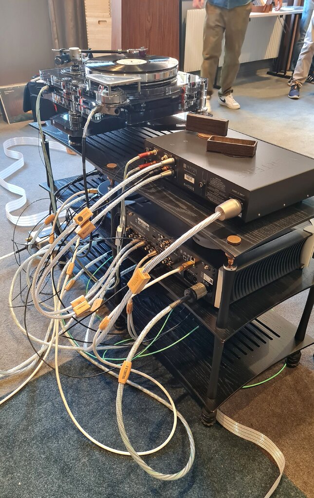 lindome Posted September 24, 2024 Posted September 24, 2024 Rummet bredvid Hificonsult var också välbesökt. Här fanns @Perfect sense med högtalare från Kroma och två olika förstärkare till drivning. Aries Cerat Protos från Cypern såg jag första gången i München, då med deras egna jättestora hornhögtalare och det var svårt att "ta in" ljudet. Nu spelade Protos förstärkaren mycket musikaliskt tycker jag. Det fanns även en rejäl pjäs från Pilium att tillgå och den fick spela på söndagen när jag var där - också bra men kanske inte lika bra som cyprioten. Den analoga källan kom från Döhmann Audio och pickup från My Sonic Lab. Mest intressant var dock tonarmen från Supatrac som fått fantastiskt mycket lovord från stora delar av hifivärlden. Det lät mycket bra och jag fick även en trevlig pratstund med Richard Braine, mannen bakom Supatrac Perfect sense, P-pan, calle_jr and 4 others 6 1 Quote