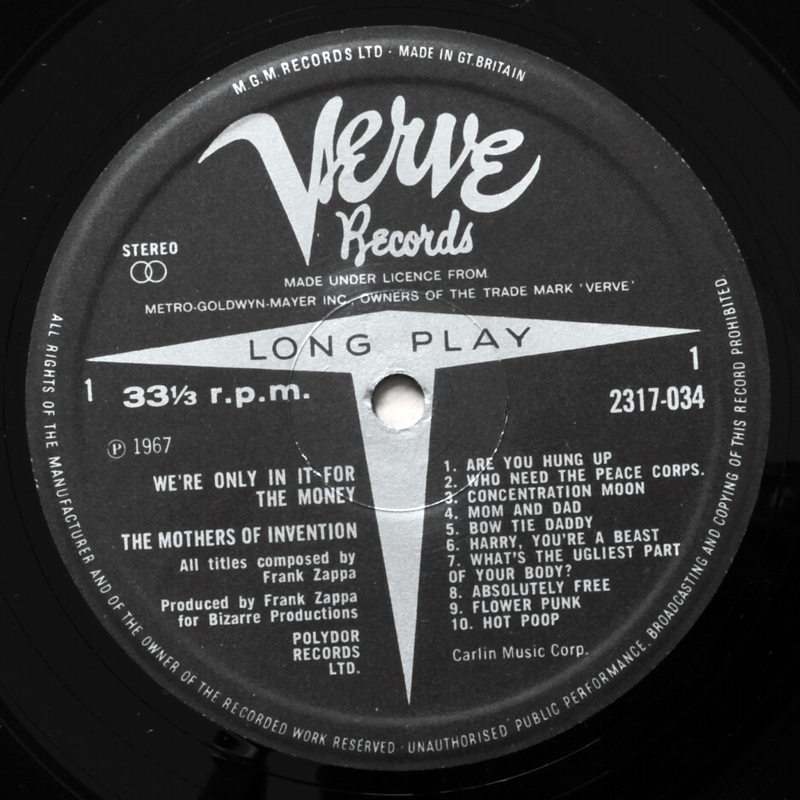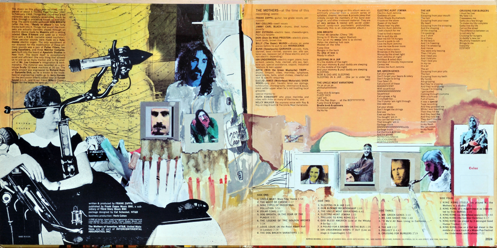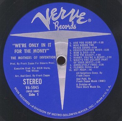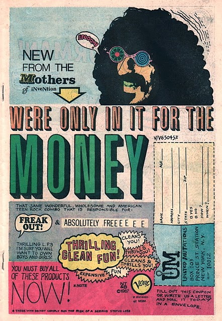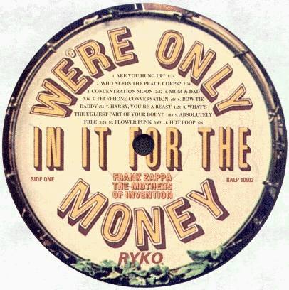 calle_jr Posted October 16, 2010 Author Posted October 16, 2010 Mothers och komikern Lenny Bruce hade gemensamma uppträden på Fillmore West i mitten på 60-talet. När Zappa var på gång med Our Man in Nirvana 1967, som skulle kombinera musik av Mothers of Invention med komik av Lenny Bruce blev han avbruten. Beatles' Sgt Pepper släpptes och marknadsfördes som det första konceptalbumet vilket fick Zappa känna sig tvungen att replikera. Han hade ju redan släppt två (vilket också McCartney senare har medgivit). Zappa ville också visa en alternativ bild till den otroligt populära flower power-rörelsen, som han tyckte direkt illa om. En annan faktor var att Zappa och Herb Cohen höll på att skapa Bizarre Productions, pga missnöje med Verve. Därför bestämde sig Zappa i stället för att skapa ett album som är parodi på varje aspekt av flower power och Sgt Pepper. Detta är bakgrunden till Mothers of Inventions tredje studioalbum We're Only In It For The Money som släpptes i USA den 4 mars 1968. Stereo- och monoversioner kom ut samtidigt eller ungefär samtidigt i USA och England. WOIIFTM innebar debuten för Ian Underwood som Mother. Han var exakt den multi-instrumentalist som FZ sökte, och samarbetet dem emellan skulle bli långt. Underwood var skolad kompositör och konsertpianist specialiserad på Mozart. Han gifte sig 1970 med slagverkaren Ruth Komanoff. Mothers of Invention på detta album var: Dick Barber (snorkar, road manager), Jimmy Carl Black (trummor, trumpet, sång), Roy Estrada (bas, sång, astma), Bunk Gardner (woodwinds, mummel), Billy Mundi (trummor, sång, yak&black underkläder), Don Preston (keyboards), Euclid James Motorhead Sherwood (sopran- & bariton sax, allmänt knäpp), Ian Underwood (piano, woodwinds). Pamela Zarubica är Suzy Creamcheese. Personligen tycker jag albumet är genialiskt i skuggan av betydligt mer hyllade samtida inspelningar som ..."Sgt Pepper", "Pisces, Aquarius, Capricorn & Jones Ltd", "Pet Sounds" osv. Men det hade å andra sidan aldrig varit möjligt utan dem. Albumet ingick i tidskriften Qs lista över "Best Psychedelic Albums of All Time." Tror inte FZ hade räknat med det Oh, I was probably one of those rather stiff people from the suburbs - I think some of us did understand, and we kept coming back for more, and more, and more. I remember being very upset when they finally finished their stint at the Garrick Theatre and went back to LA. I felt as if the real heart had gone out of New York City, and I had to get back on with my Conservatory music training life, which seemed very dull after this. Mitt ex är en engelsk press av stereoversionen 2317 034. Uppvikt gatefold (klickbar) Personer på bilden: Gracie Allen, Theda Bara, Barbie, Ludwig van Beethoven, Medalo Bops, Eric Burdon, Pauline Butcher, Richard E. Byrd, Lon Chaney, Christmas Tree, Cindy, Coach Ware, Dallas Cop, Ginevra de Benci, Dotty Dribble, Albert Einstein, Sgt. Fury, Sue Gross, Jimi Hendrix, Lyndon B. Johnson, Kansas, Hirioshi, Kataoka, Ken, Dr. Knapp, Lynn Lascaro, Tommy Marlowe, Mary Martin, Norbert Obermanns, Ken Osmond, Lee Harvey Oswald, Gregory Peck, Pope "X", Billy Porter, Elvis Presley, Peter Reet, Cal Schenkel, Rod Serling, Nancy Sinatra, Jeff Sklarow, Gail Sloatman, John Sloatman, Soupy Sales, Statue Of Liberty, Jen Taylor, Harry Truman, Werner, Ed Wynn, John Zacherley, Francis Zappa, Gail Zappa. De bästa pressarna Amerikanska utgåvor 1968 Verve V-5045. Monoversion. Gatefold med blå-silver etikett. Innehåller ett medföljande blad med figurer som kunde klippas ut likt Sgt Pepper. 1968 Verve V6-5045. Stereoversion. Gatefold med blå-silver etikett. Det lär även finnas en ocensurerad stereoversion från 1968 med svart Verve-etikett (2a-press). Engelska utgåvor 1968 Verve VLP-9199. Monoversion. 1968 Verve SVLP-9199. Stereoversion. 1972 Verve/Polydor 2317 034. Återutgåva i stereo, gatefold. We’re only in it for the money 1995 Ryko Ralp10503. Måttligt censurerad stereoutgåva. Quote