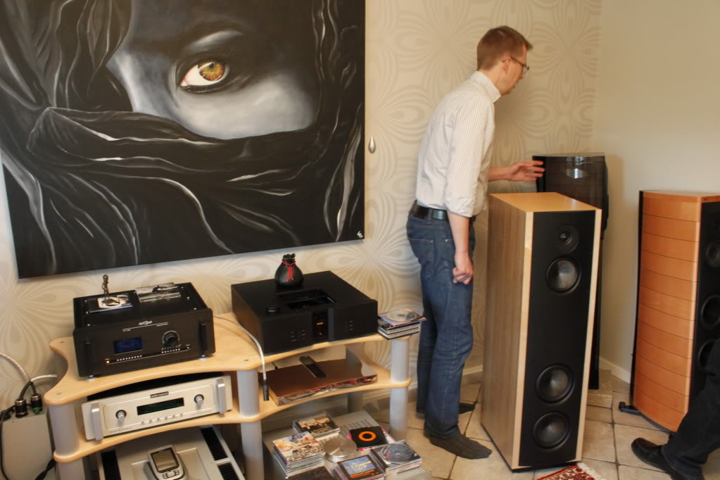 stargazer Posted June 6, 2011 Author Posted June 6, 2011 Tillbaka till den (violin)röda tråden På plats med lite bakgrund: Teorierna inför denna uppgörelse har varit många och de ängsliga Hifi-Surf-nätterna framför datorn ännu fler. Det hela tog verkligen fart i och med förra årets pilgrimsresa till Göteborg och Arkenmässorna (det var ju flera mässor inte bara Arken). Oerhört roligt att besöka Götet och uppleva god Hifi men framför allt träffa alla härliga Hifi-entusiaster… det var grymt . Nåväl. Det föll sig inte bättre än att våren -11 blev så pilgrimsresan Till Hufvudstaden, där ett antal finalister hade samlats för att göra upp om titeln, och sannolikt också hedersplatsen i new orders vardagsrum. The contenders are: Ktéma - Franco Serblins unika skapelse i eget namn Sonus Faber Amati Futura - Det hetaste heta från Italiens Högtalarstolthet Sonus Faber Stradivari Homage - Serblins sista Statement under Sonus Faber-eran Och katten bland hermelinerna… Wilson Audio Sophia 3 - Tunggung med finess från en Amerikansk Champ En annan finalist, som också låg på absoluta toppllistan, föll pga att vi inte hittade någonstans i Stockholm där Verity Audio Parsifal Ovation kunde demas. Men man kan inte få allt här i världen… på något sätt kändes det som att startfältet räckte till ändå Quote