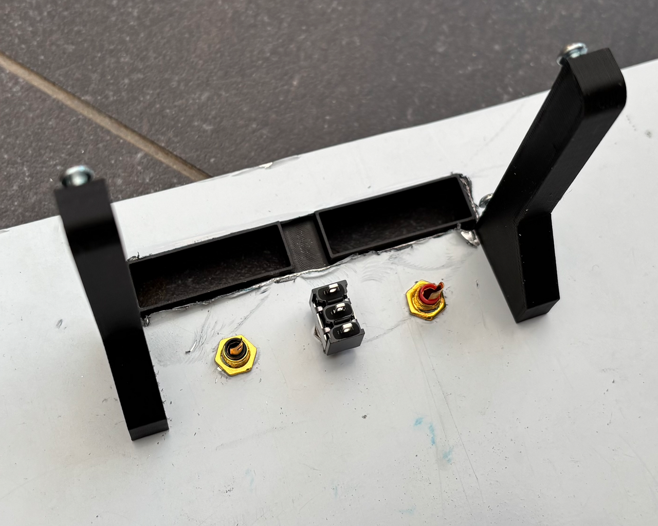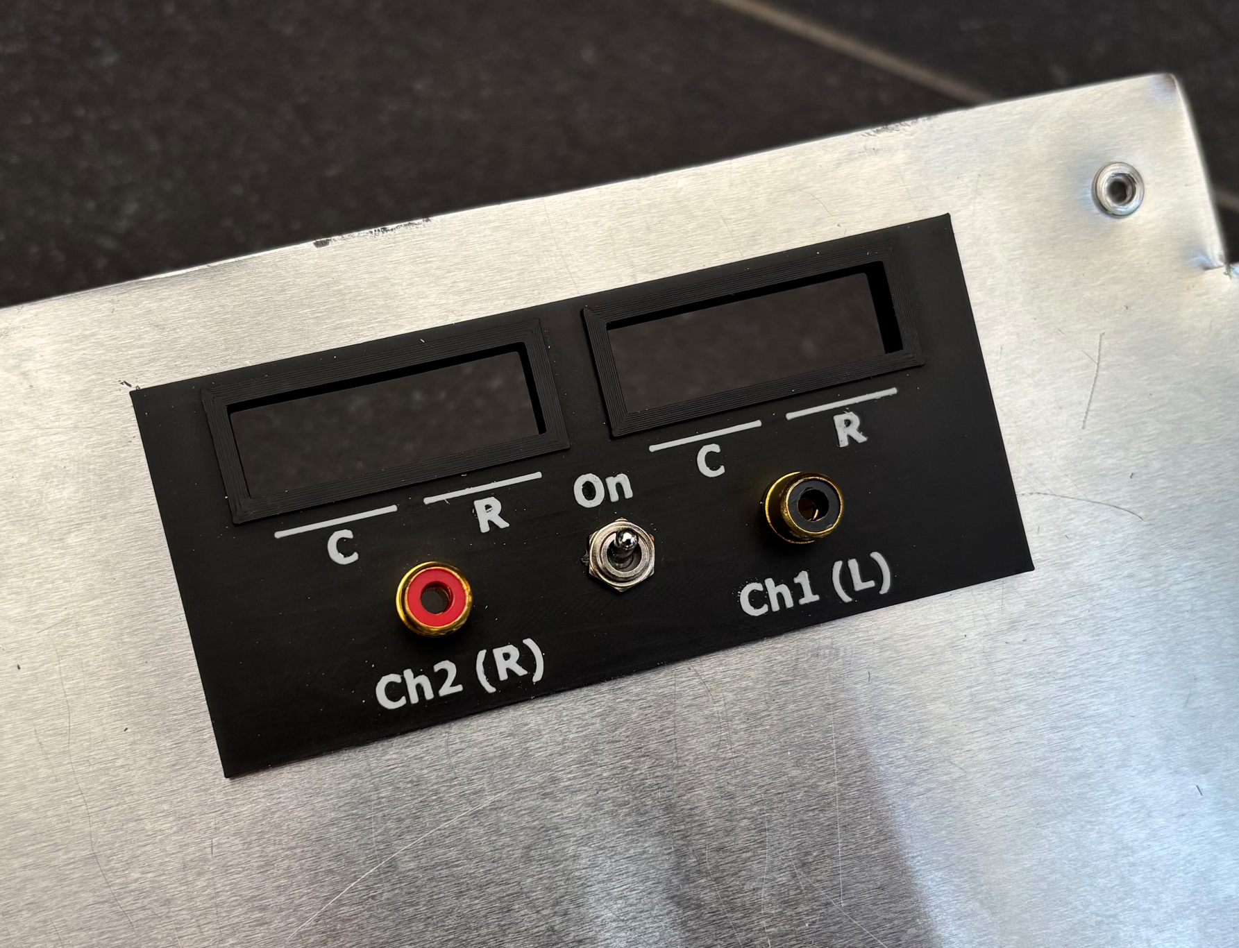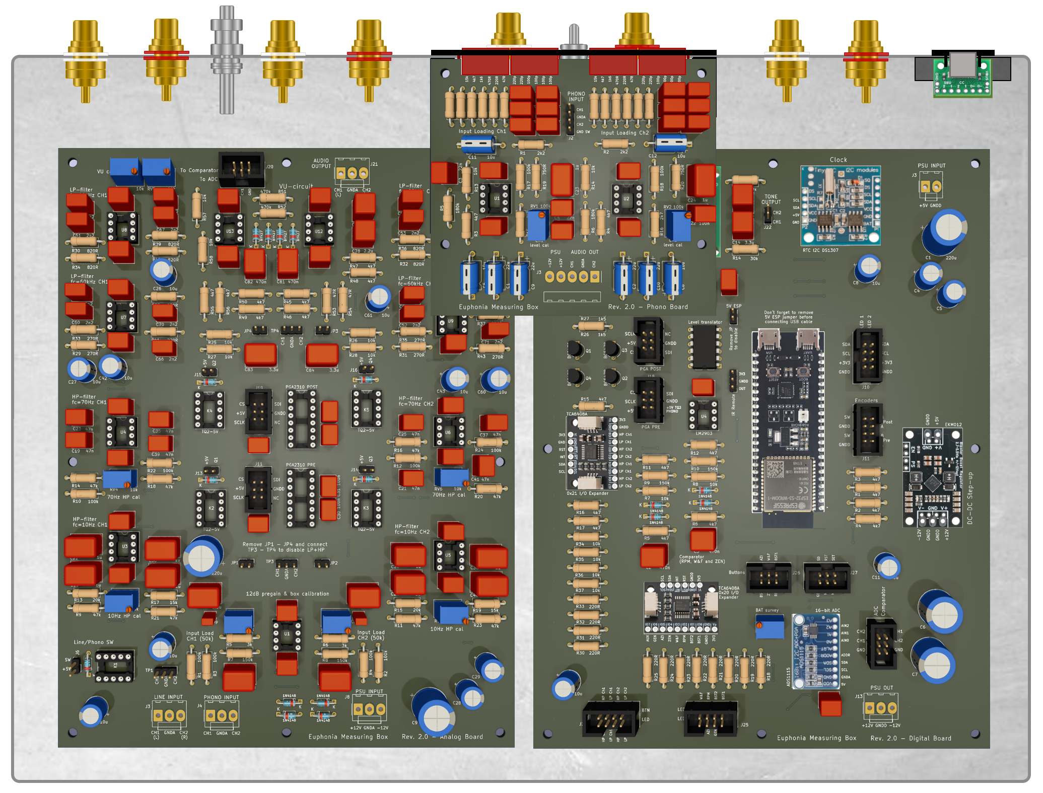 En liten statusuppdatering i form av bilder... Testning med LP: Layout i låda 356 x 254 mm: 3D-printade paneler (rca-kontakterna är tillfälliga, inte rätt typ):